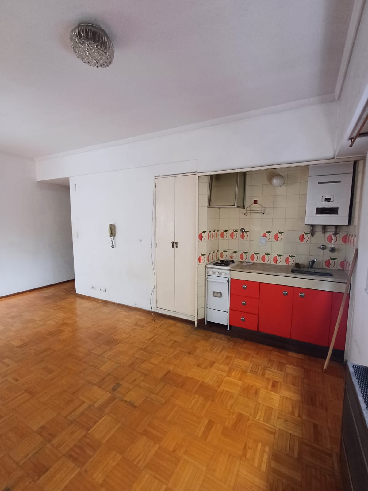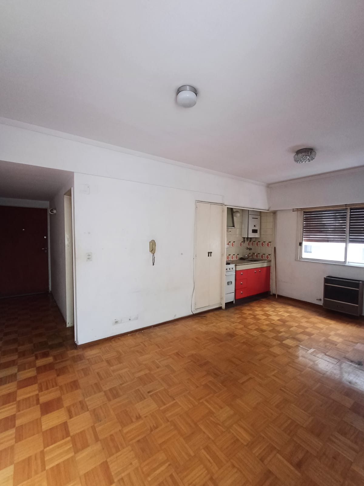 El departamento consta de un ambiente, un baño y un living comedor, perfecto para una persona o una pareja. La cocina integrada optimiza el espacio. El edificio cuenta con ascensor.